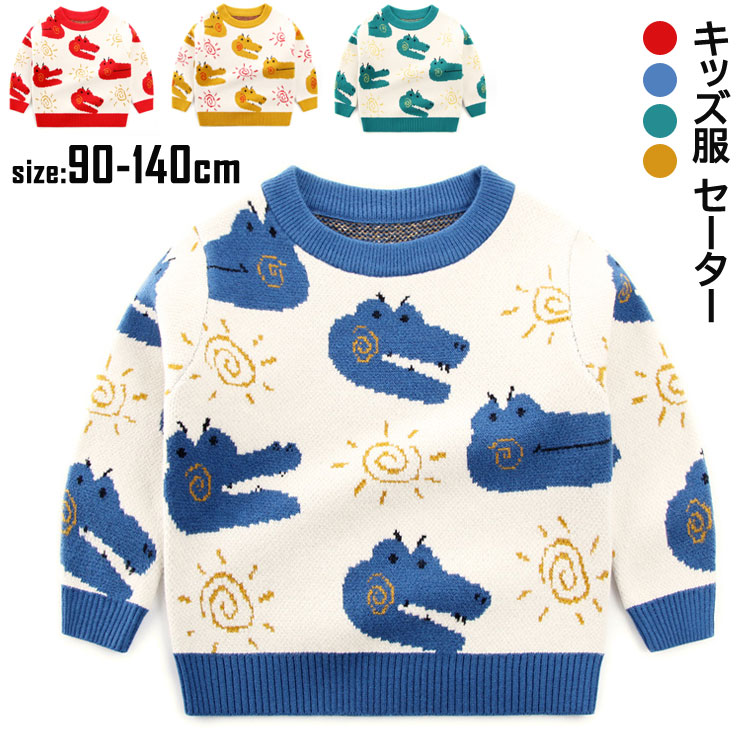 子供用かわいい人気 恐竜柄ニットセーター おしゃれ 90 100 110 120 130 140 クリスマスとして最適
