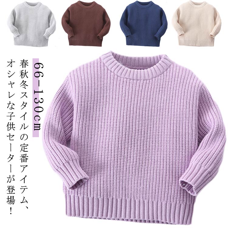 66~130 プルオーバー トップス 子供服 セーター クルーネック 暖かい