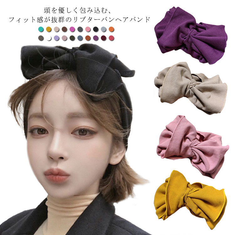全8色 ヘアバンド ヘアターバン 幅広 リボン ヘアアクセサリー レディース クロス ヘアバンド センター 大きいリボン ギフト 誕生日 プレゼント 女性 大人 カジュアル まとめ髪 かわいい シンプ