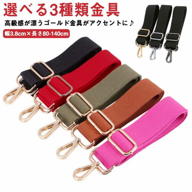 ショルダーベルト ショルダーストラップ 幅広 交換用 ショルダー紐 斜めがけ 太め キャンバス 帆布 アジャスター バッグストラップ 選べる3種類金具 全17色