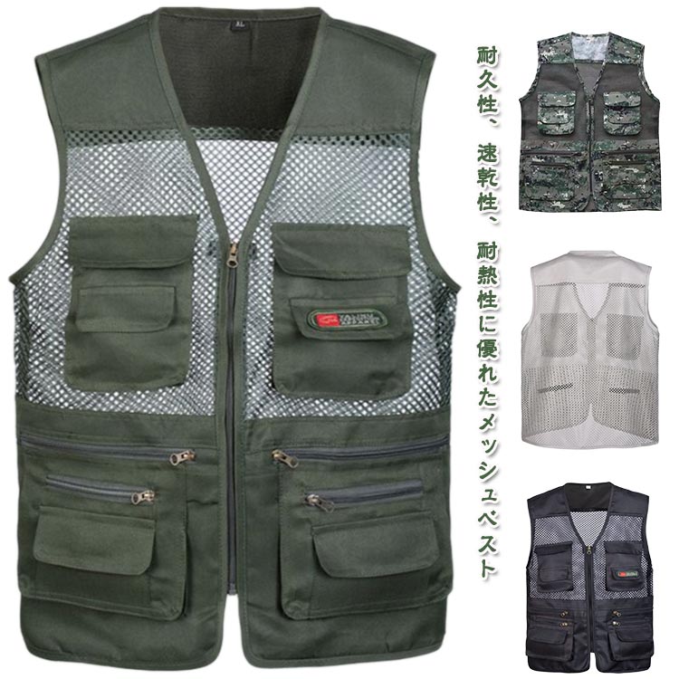 農業 ベスト メンズ 撮影用 薄手 涼しい ワークベスト メッシュベスト メッシュ ジップアップ ゴルフ 前開き お釣り 遠足 アウトドア 作業着 軽量 暑さ対策 サマーベスト 登山