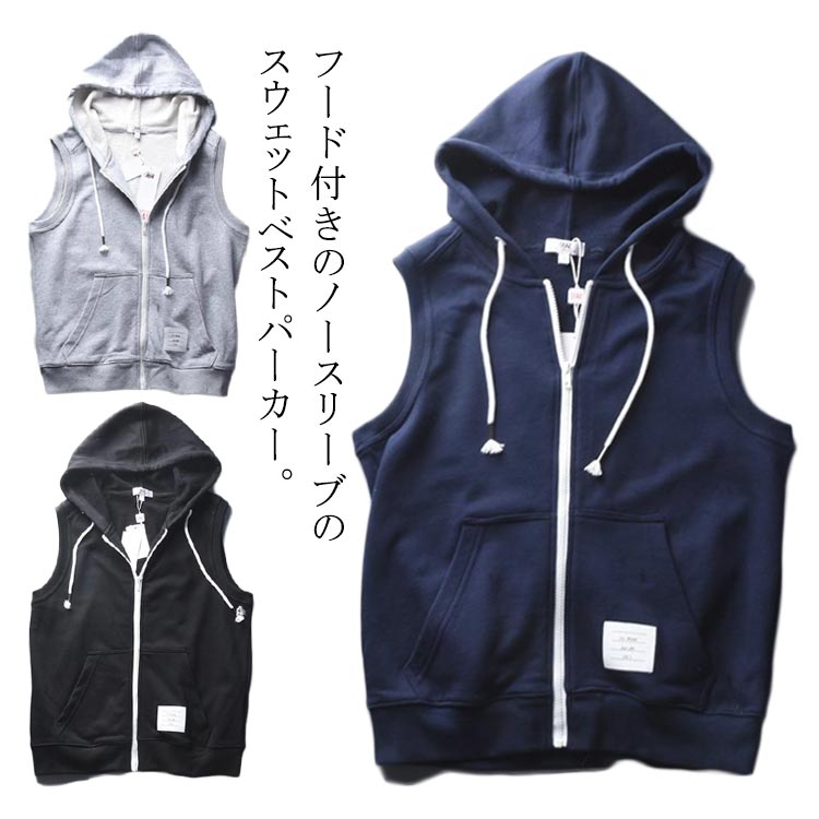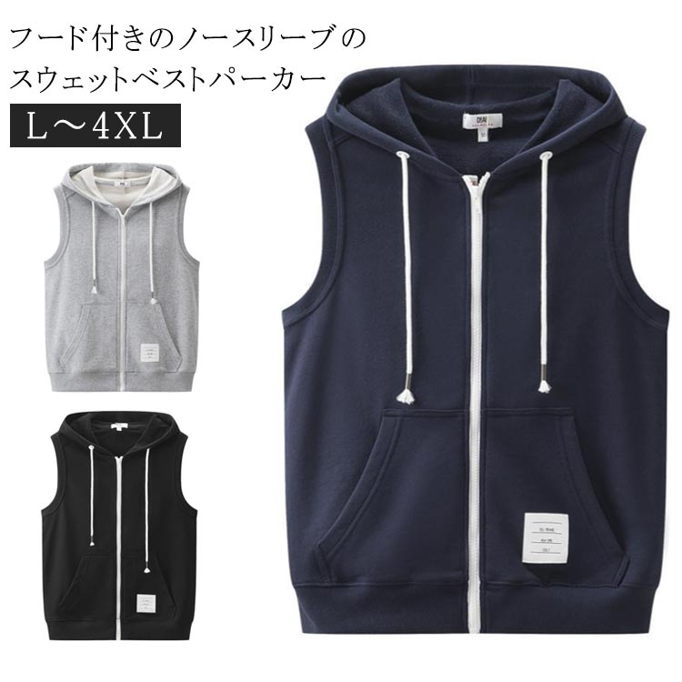 ベスト ノースリーブ 前開き スウェット トップス メンズ ジップアップパーカー 重ね着 前開きベスト 春 秋 ジレ フード付き ノースリーブパーカー 普段着 お出かけ パーカ パーカーベスト
