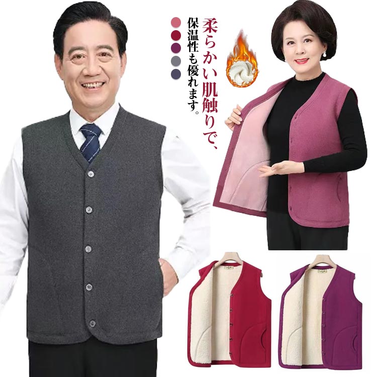 2~5 男女兼用 裏起毛ベスト ネック 前開き 重ね着 お年寄り トップス
