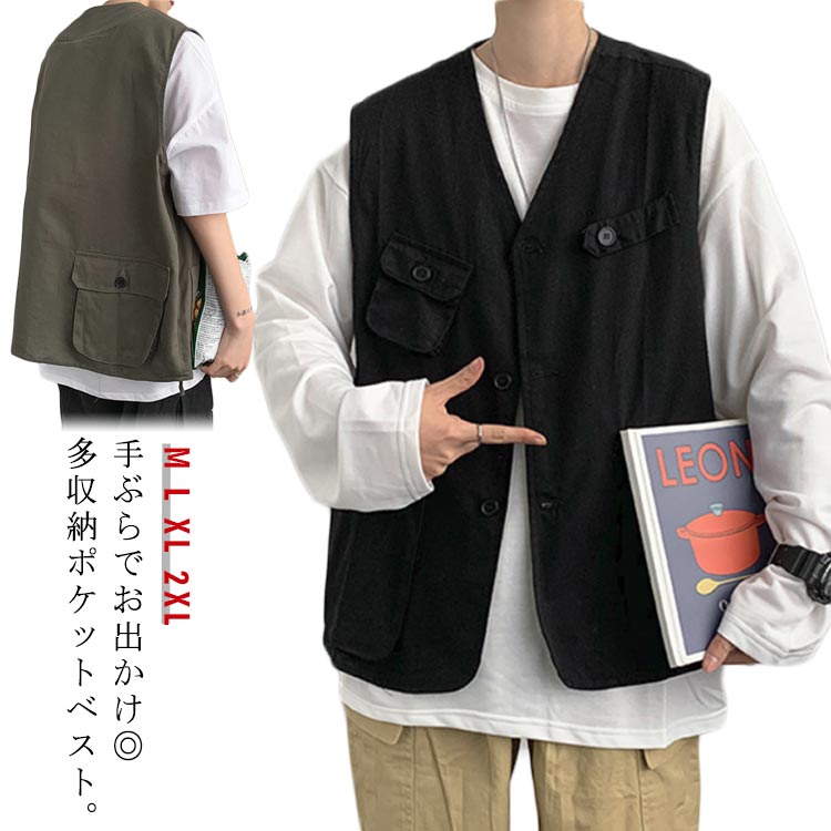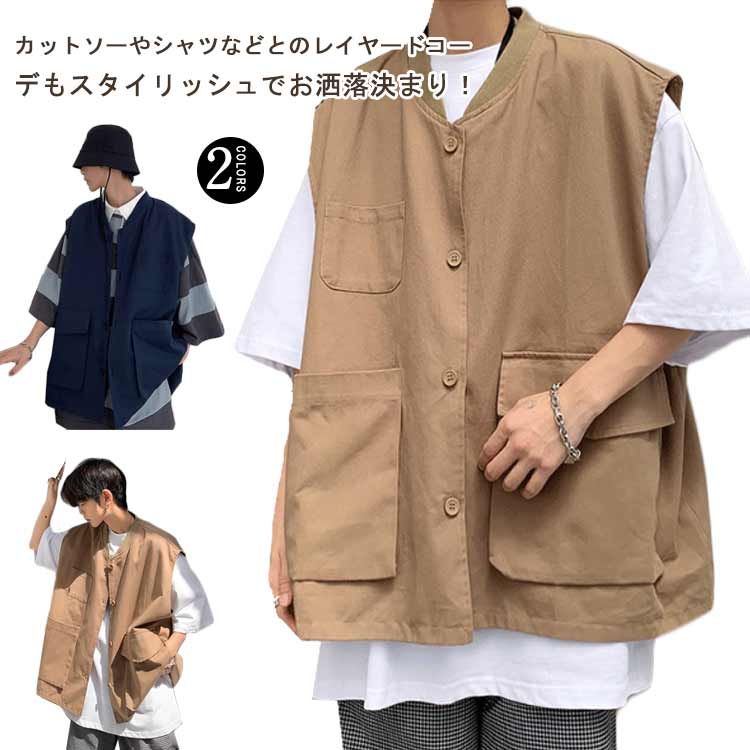 メンズ ベスト サマーベスト ワークベスト ポケット付き 春夏 ベスト カーゴベスト