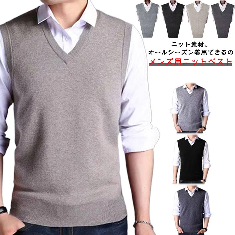 ベスト スクール ニット ニットセーター Vネック 夏 プルオーバー トップス ショート丈 黒 セーター メンズ シンプル フォーマル ビジネス 無地 春 秋 冬 ニットベスト 大きいサ 夏用