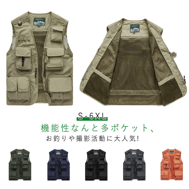 お釣り カジュアル ワークベスト 夏用 軽量 カメラマン アウトドア メンズ 薄手 メッシュベスト 通気性 多機能 ノースリーブ 撮影 作業用 射撃 多ポケット 大きいサイズ おしゃれ フィッシング
