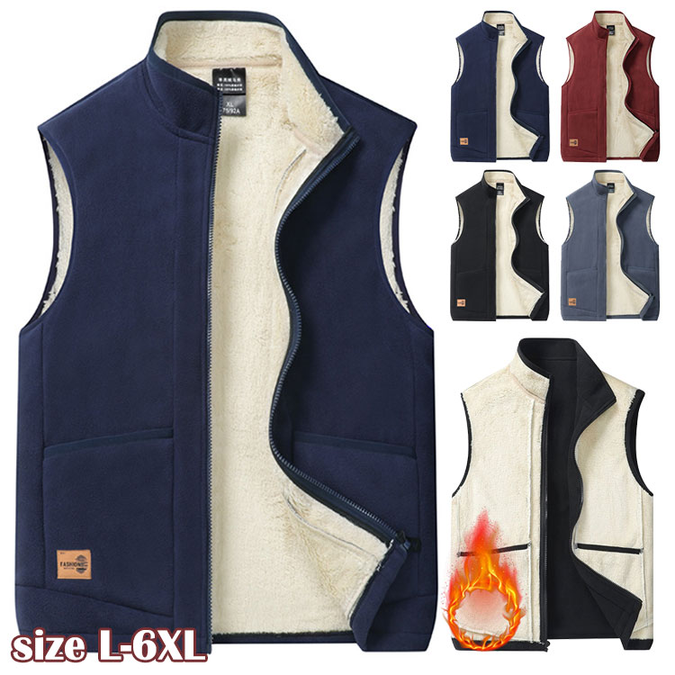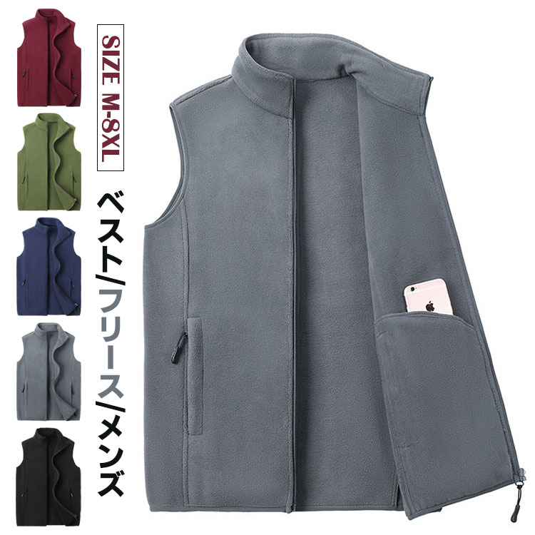フリース メンズ フリースベスト シニア 立ち襟 ノースリーブジャケット ジップアップ アウトドア 登山服 ボアベスト 防寒 保温 軽量 上着 春秋 冬 大きいサイズ M-8XL 誕生日 ギフト プレ