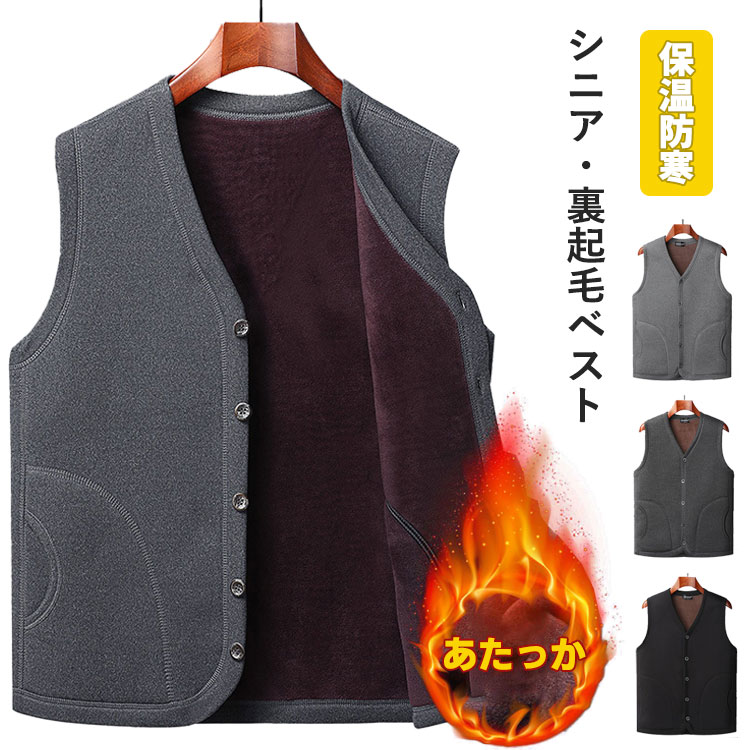 シニアファッション メンズ ベスト 裏起毛 秋冬 あたっか 全3色 前開きベスト 父親 誕生日 ルームウェア 防寒 保温 プレゼント ギフト シニア 祖父 おじいちゃん 60代 70代 80代