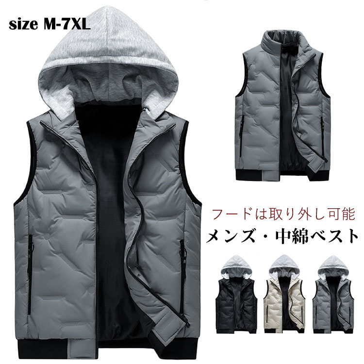 メンズ 中綿ベスト 冬服 ベスト 2Way ジュニア 男の子 学生 あったか 保温 防寒 カジュアル おしゃれ フード取り外し可能 ルームウェア 父の日 普段着 通学通勤 部屋着 誕生日 ギフト プレ