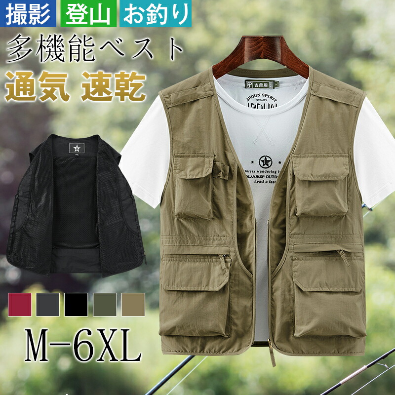 ★送料無料★メッシュベスト 夏用 メンズ キャンプ アウトドアベスト フィッシングベスト お釣り 撮影 山歩き 登山服 作業着 ジャケット メンズトップス 全4色 ~6