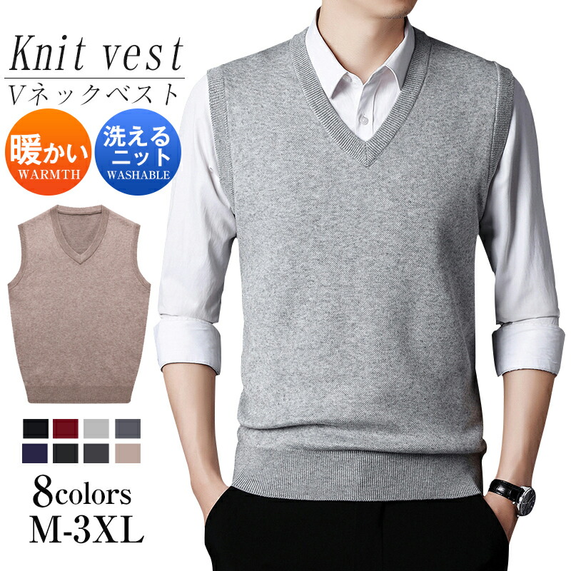 ニット ベスト メンズ Vネック 無地 ビジネス メンズベスト 定番 シンプル 春秋 冬 洗える トップス セーター 暖かい ゆったり 防寒 フォーマル ゴルフウエア ウォッシャブル 保温 ファッショ
