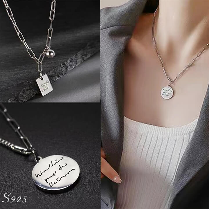 H-24タイプ ネックレス コイン 四角 ネックレスチェーンネックレス レディース シンプル シルバー Good 金属アレルギー対応 シルバー925 ギフト誕生日プレゼント贈り物 Luck