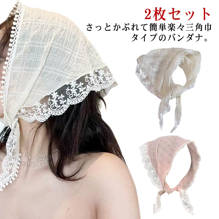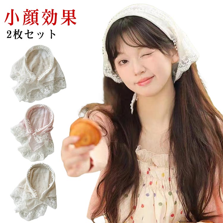夏 レース 写真撮影 カチューシャ スカーフ 小顔効果 ヘッドアクセサリー 2枚セット おしゃれ バブーシュカ シンプル 三角巾 ヘアバンド かわいい フェス バンダナ 可愛い レディース