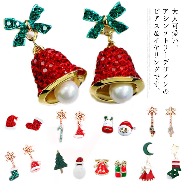 アシンメトリー 可愛い シルバー925針 レディース クリスマス ピアス リボン サンタクロース 雪だるま 雪の結晶 クリスマスツリー 贈り物 ギフト 金属アレルギー対応