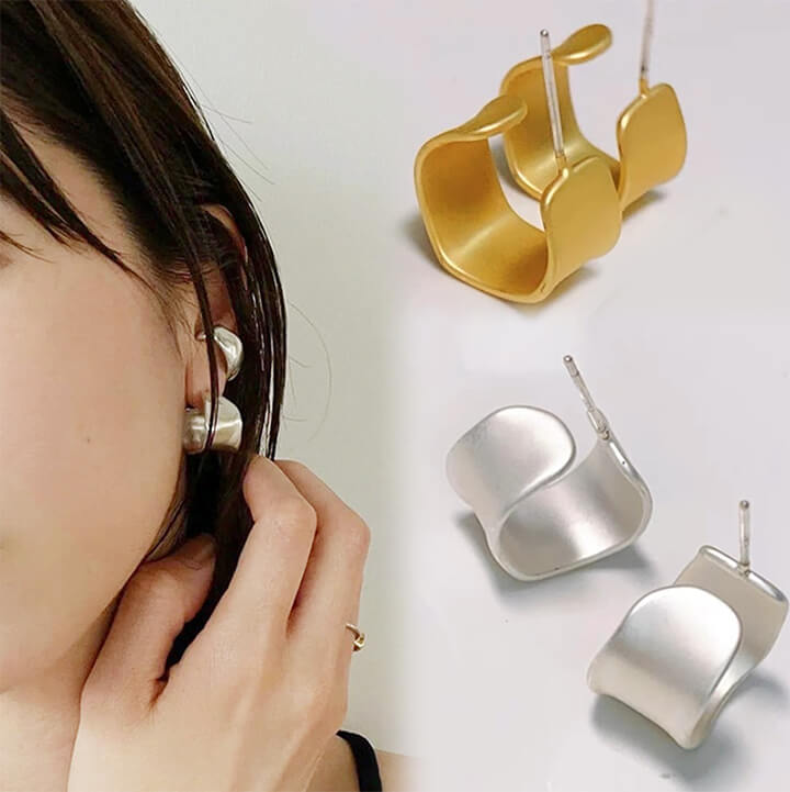 G-6メタルフープピアス マットゴールドシルバーおしゃれ上品 ゴールド アクセサリーギフト誕生日プレゼント贈り物 パーティー シルバーファッション
