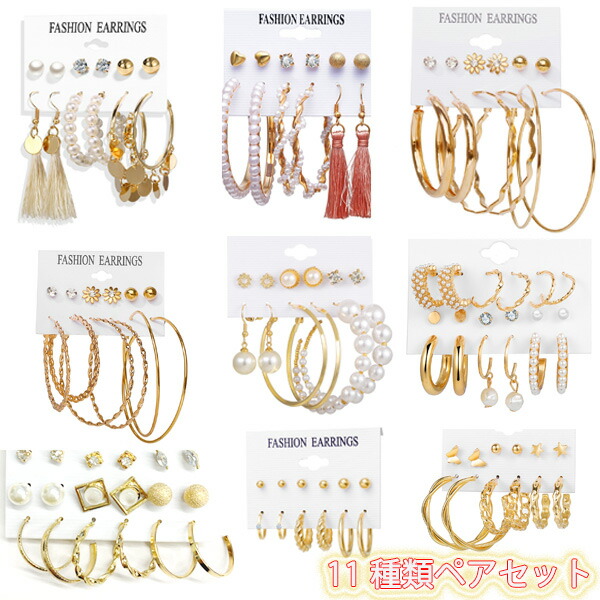 11タイプペアセット 6ペアセット 9ペアセット フリンジピアスイヤリング レディース チェーン ピアス 可愛い シンプル プレゼントパーティ 揺れる