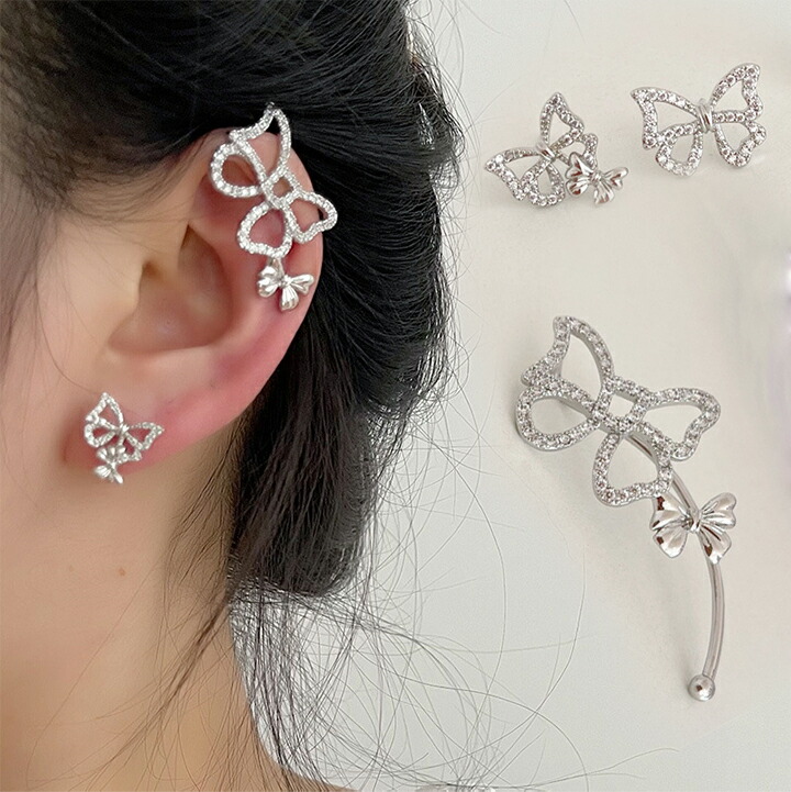 C-9ピアス 耳飾り レーディス 蝶々イヤーカフ 両耳 s925 シルバー 結婚式 2次会 アクセサリー ギフト 誕生日プレゼント 卒業式 卒園式 パーティー 贈り物