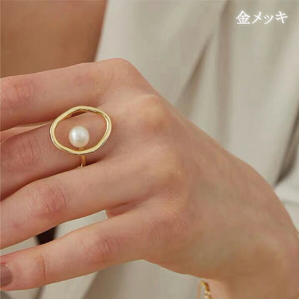 B2パール リング 指輪 金メッキ レディース 人気ング ファッションリング 大人 上品 パーティー おしゃれ