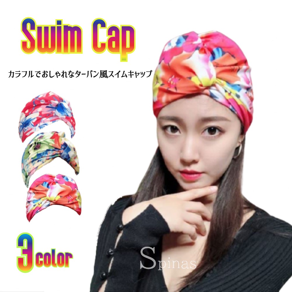 カラフルで大人可愛い スイムキャップ ターバン風 レディース 水泳帽 女性用 大人 水泳 キャップ フィットネス 水着 帽子 温泉 おしゃれ プール 水中 ウオーキング ジム トレーニング