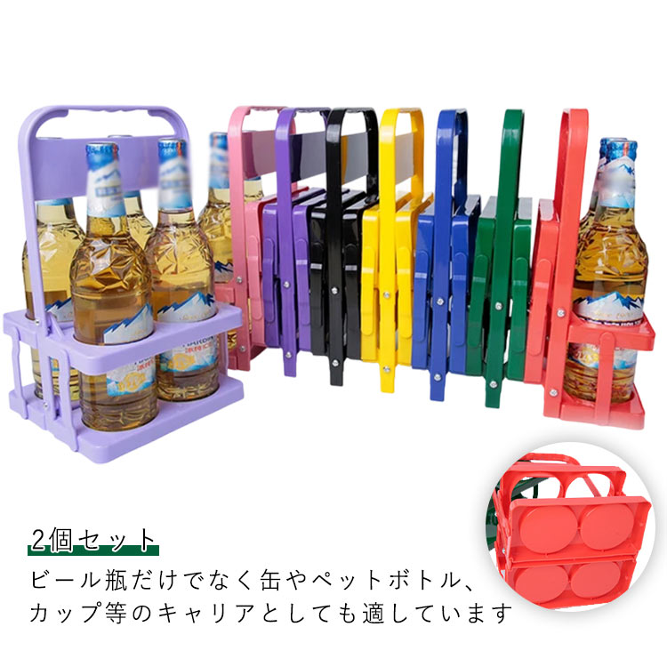 4本入 ラック 2個セット 折りたたみ ドリンク ボトルキャリアー 飲み物 バー用 手提げ ビール瓶 キャリア 持ち歩き 缶 ドリンクホルダー BBQ ワインボトル ビールジ ボトルケージ