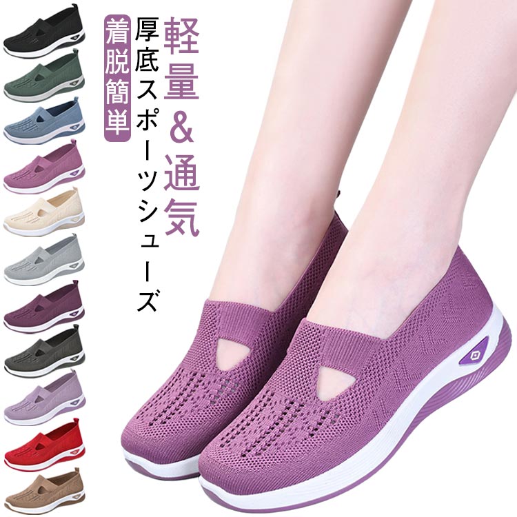 スポーツシューズ ニット 運動靴 レディース スリッポン メッシュスニーカー 婦人靴 厚底 春 履きやすい ウォーキングシューズ 通気性 大きサイズ 幅広 軽量 ランニングシューズ