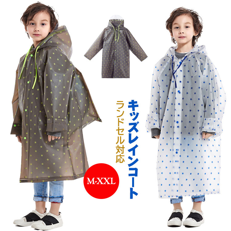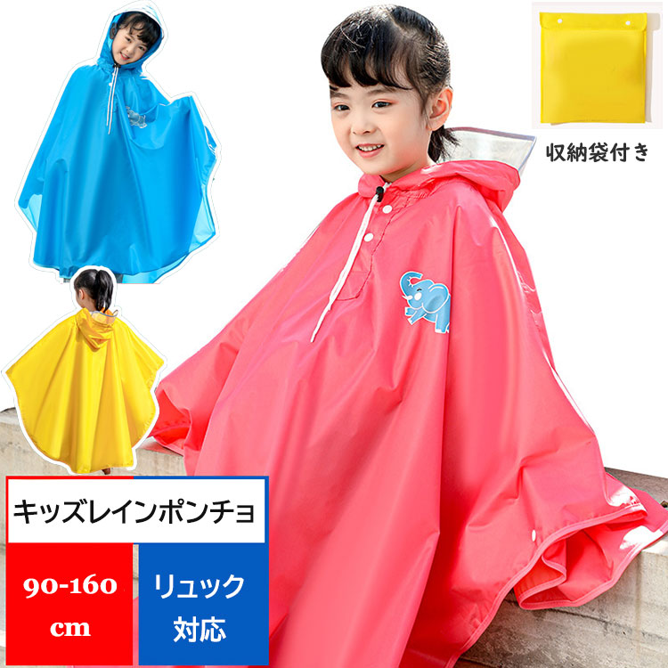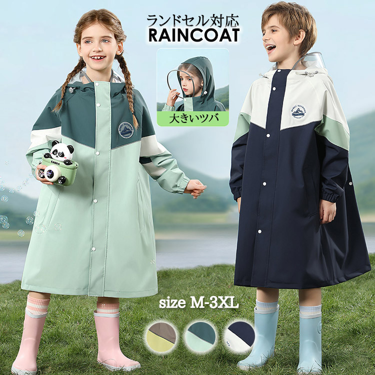通園 通学 レインコート ランドセル対応 子供 キッズ ジュニア はっ水 女の子 男の子 カッパ レインウェア ポンチョ 雨具 防災 防寒 防風 収納袋付き 2色 M-2XL