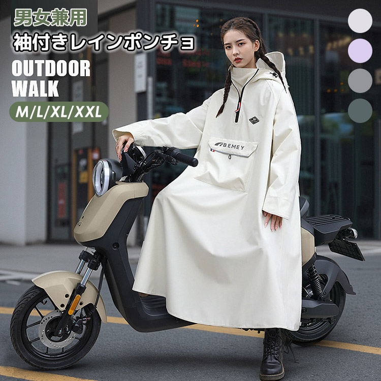 袖付き レインポンチョ レインコート レディース メンズ ロング丈 ヘルメット対応可能 自転車 雨合羽 カッパ レインウェア 雨対策 梅雨対策 豪雨 通勤 通学 バイク アウトドア用 男女兼用 M L