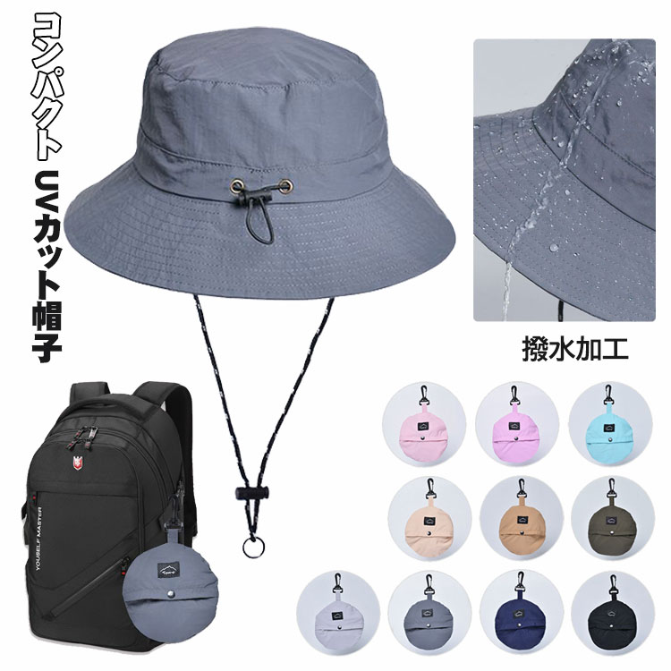 コンパクト UVカット帽子 サファリハット メンズ レディース 紫外線対策 日焼け 撥水 通気 速乾 つば広 日除け 軽量 小顔 バケットハット あごひも 釣り 旅行 キャンプ 山登り アウトドア 1