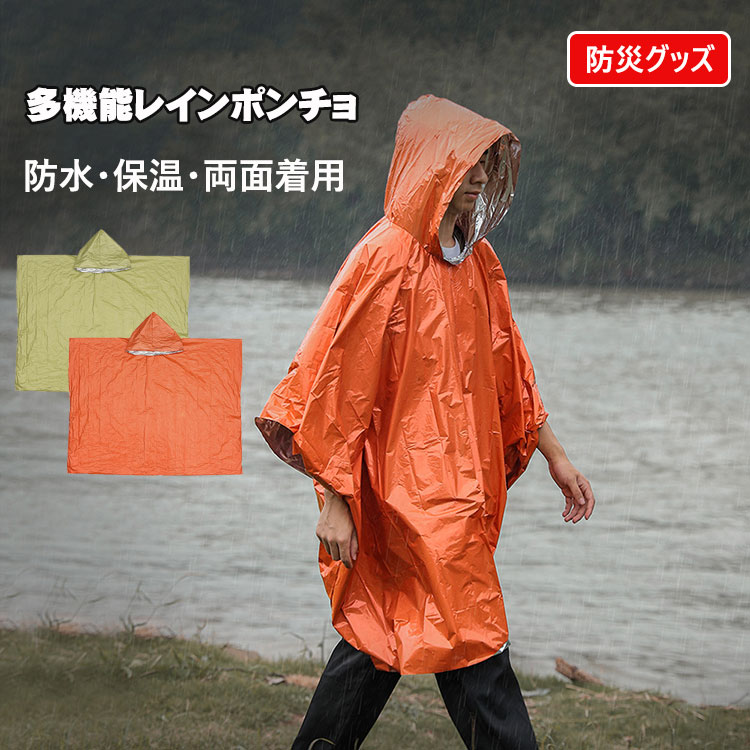 2個セット 多機能 レインポンチョ 防災グッズ 保温 防寒 レインコート 薄型 非常用 コンパクト 携帯便利 自転車 ポンチョ 反射救急レインコート レインウェア 雨具 登山 キャンプ 釣り ハイキン