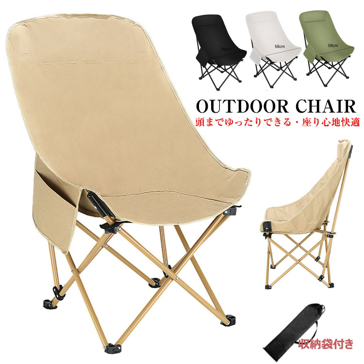 アウトドア 椅子 頭までゆったりできる アウトドアチェア 軽量 折りたたみ レジャー用品 耐荷重120kg チェアー キャンプチェア レジャーチェア 4色 BBQ キャンプ 運動会 イス 花見 遠足