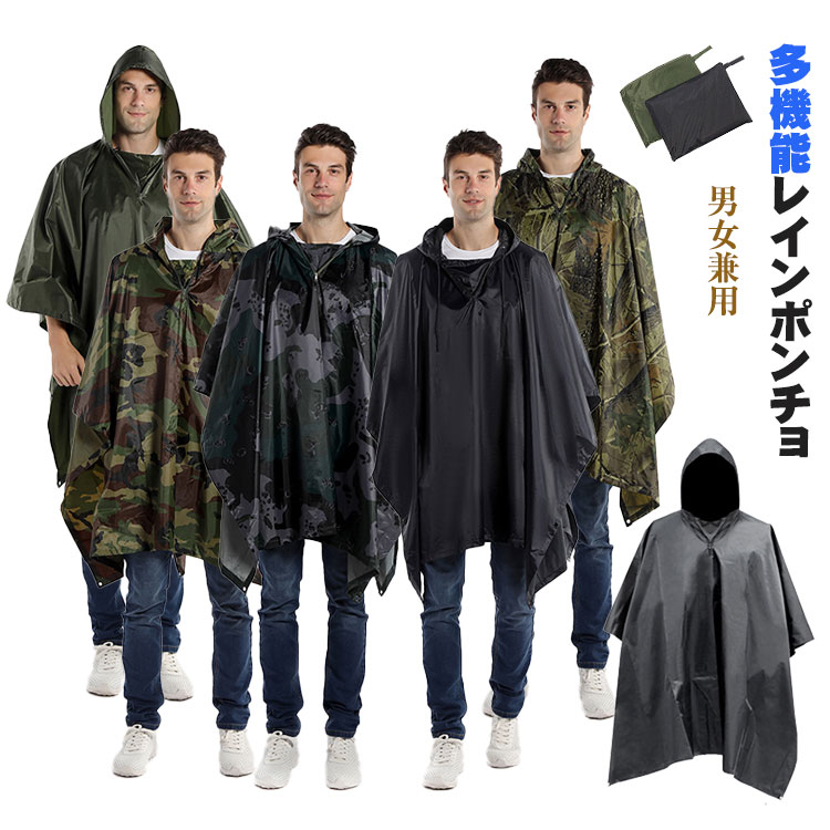 【送料無料】避難やアウトドアに使いやすい男女兼用多機能レインポンチョ