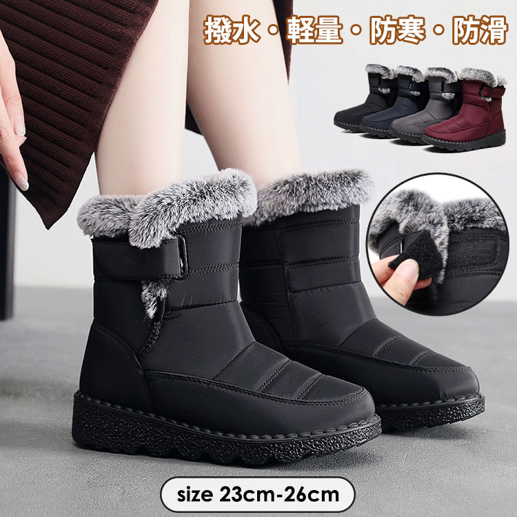 ムートンブーツ レディース 撥水 軽量 婦人靴 高齢者 ムートンシューズ スノーブーツ スノーシューズ 防寒シューズ ウィンターブーツ マジックテープ 履き脱ぎ簡単 雪靴 防寒 保温 裏起毛 防滑 大