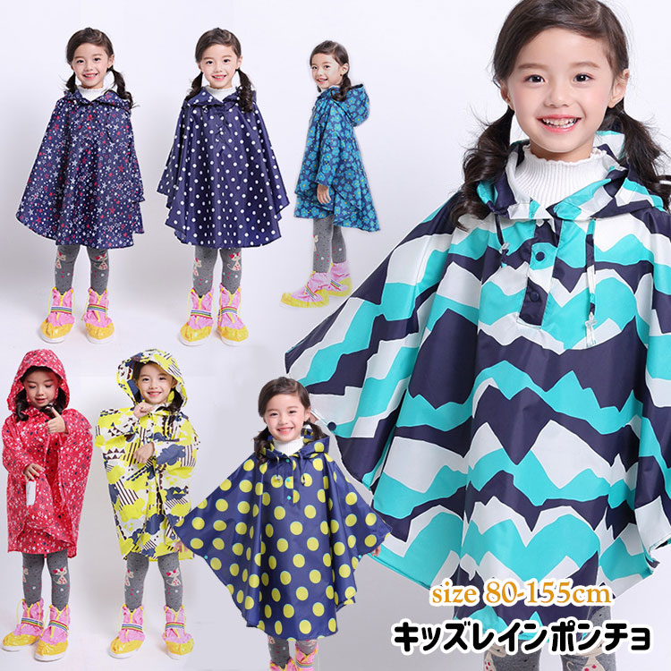 通園 通学 7色 レインポンチョ レインコート レインウェア かわいい 子供 キッズ ジュニア 撥水 女の子 男の子 カッパ ポンチョ 雨具 防災 防寒 防風 80 90 100 110 120