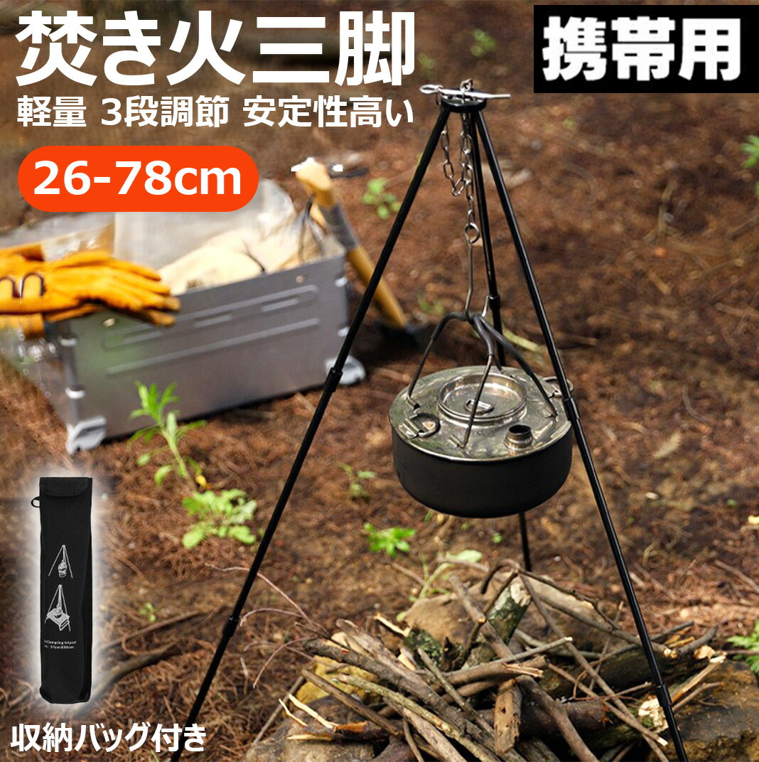 焚き火台 焚き火三脚 焚火缶 高さ調節可能 安定性高い コンパクト 軽量 焚き火 キャンプ アウトドア用 収納バッグ付き