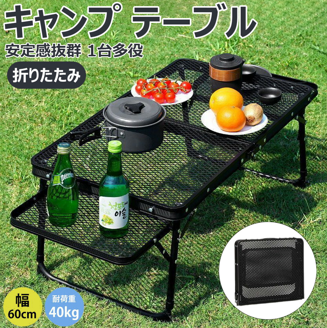 キャンプ テーブル メッシュ サイドテーブル付き アウトドア テーブル 軽量 折りたたみテーブル コンパクト ローテーブル 折り畳み ミニテーブル 耐熱 焚き火テーブル 収納袋付き