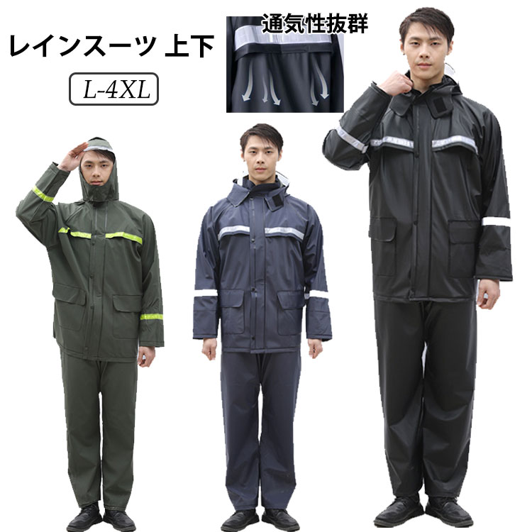 レインスーツ 上下 メンズ レインコート 2点セット レインウェア アウトドア 反射テープ付き ポケット付 通気性抜群 防災 自転車 バイク 通学 通勤 豪雨 梅雨対策 雨具 大きいサイズ L-4XL