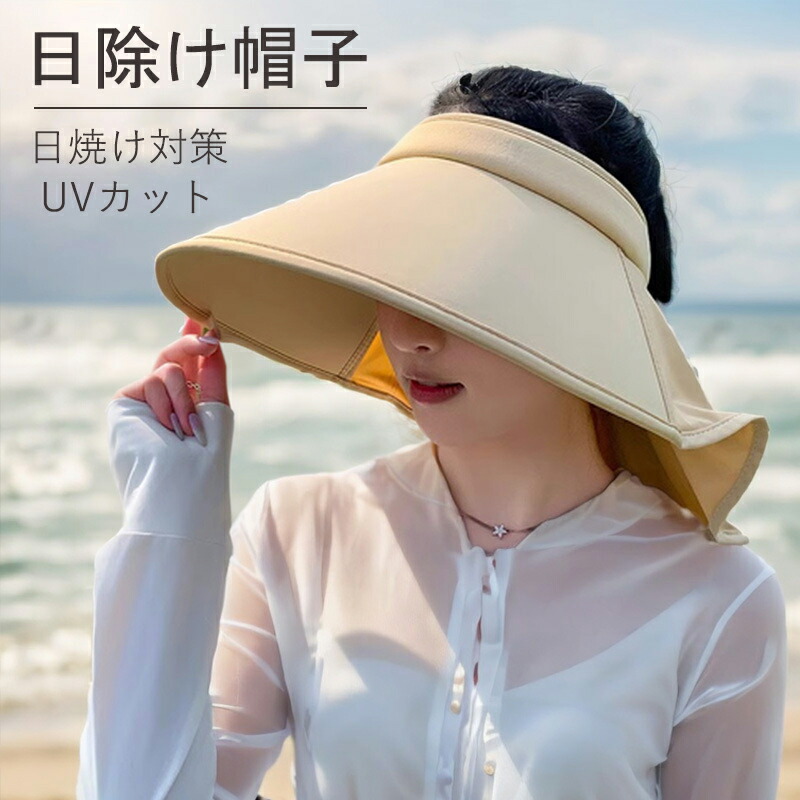 日除け帽子 サンバイザ UVカット 帽子 つば広 首筋まで 日焼け対策 接触冷感 完全遮光 ポニーテール穴付き 通気性 軽量 折りたたみ 持ち運び便利 小顔効果 旅行 園芸 通勤 農作業 アウトドア
