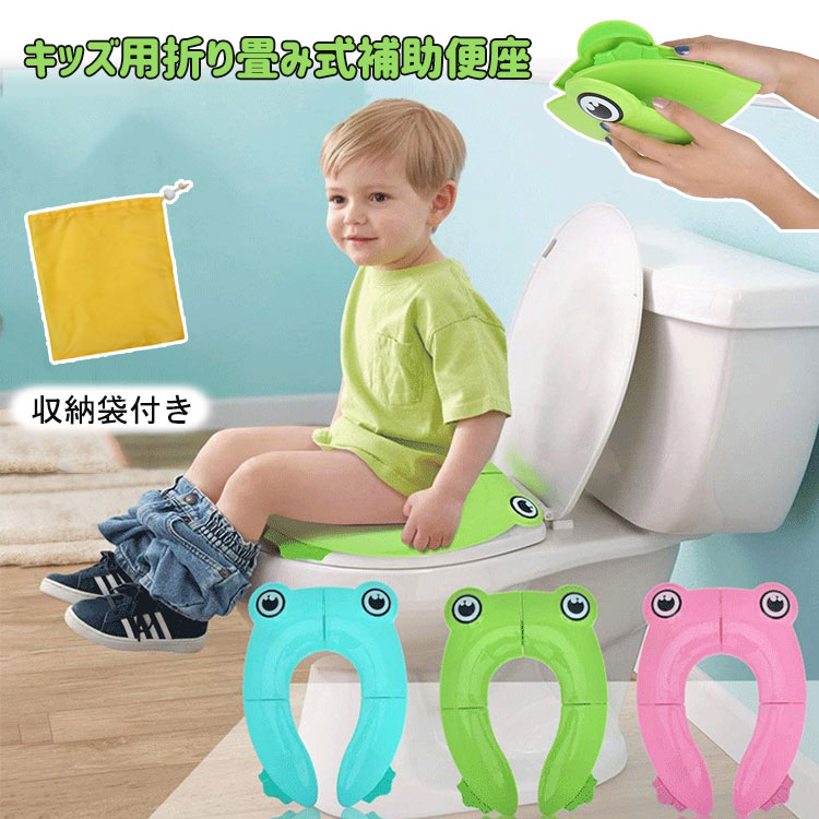 キッズ 補助便座 折りたたみ式 携帯便利 子供 補助ベンザ トイレ補助 便座補助 持ち運び トイトレ トイレトレーニング ベビー 外出 コンパクト収納袋付き かわいい カエル トイレ練習 幼児用便座