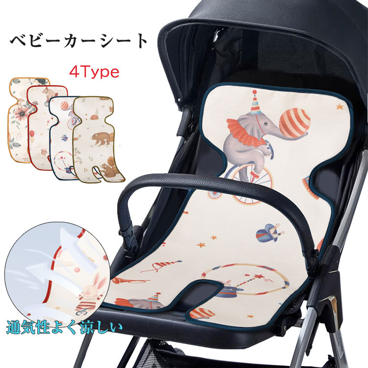夏用 接触冷感 ベビーカーシート 薄手 洗える ベビーチェアマット 自動車用 暑さ対策 ひんやり ベビー用品 可愛い シート 4タイプ