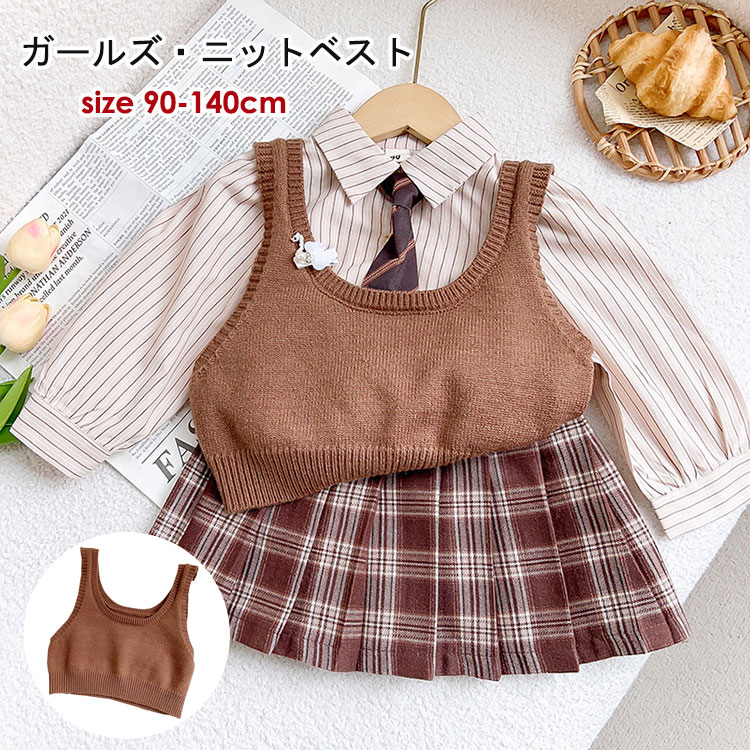 ショット丈 ニットベスト キャミ ベスト チョッキ キッズ 女の子 ファッション ニットセーター 子供服 春夏 プルオーバー 重ね着 可愛い オシャレ アウター ガールズ 普段着 通園 通学 90 1