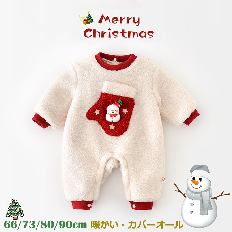 クリスマス ロンパース 冬服 カバーオール ベビー 赤ちゃん 女の子 男の子 もこもこ 防寒 66 73 80 90cm 暖かい オールインワン ベビー服 ふわふわ 秋冬 プレゼント ギフト 百日祝い