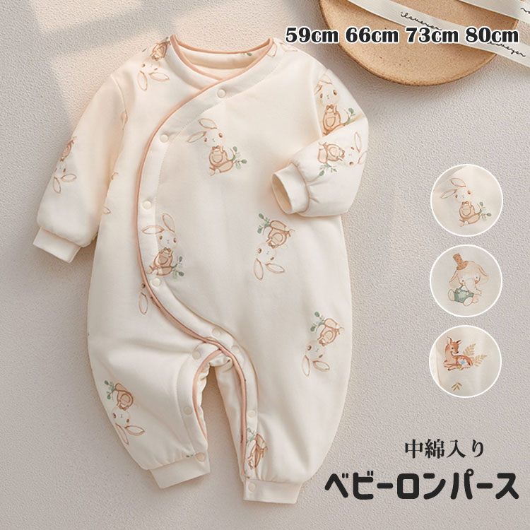 秋冬 カバーオール 中綿入り 防寒 かわいい コットン ベビーロンパース 新生児 男の子 女の子 暖かい 厚手 中綿 ベビー服 0ヵ月 3ヵ月 6ヵ月 お出かけ 寒さ対策 人気 出産祝い 59 66