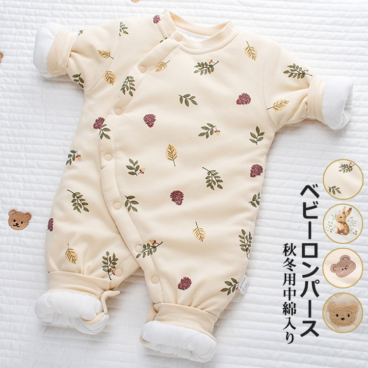 新生児 ロンパース 秋冬 ベビー カバーオール 赤ちゃん コットン 中綿入り 防寒 かわいい オールインワン 男の子 女の子 暖かい ベビー服 お出かけ 冬服 寒さ対策 人気 出産祝い 59 66 7