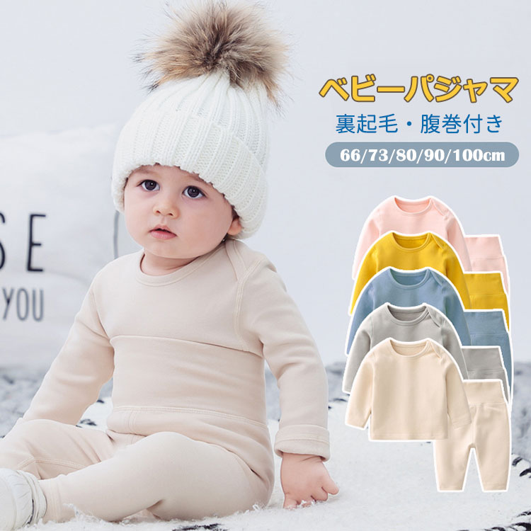 ベビー パジャマ 女の子 男の子 ルームウェア 2点セット 裏起毛 秋冬 あたっか 下着 インナー コットン かわいい 腹巻付き 長袖 保温防寒 キッズ 66 73 80 90 100cm 上下 部屋