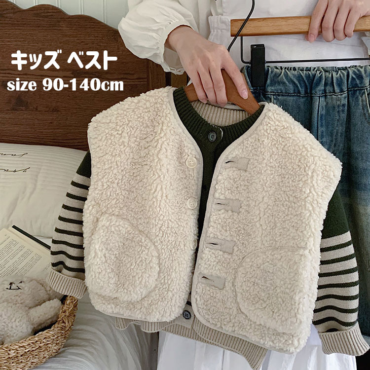 子供服 ボアベスト キッズ ボア ベスト 子ども 男の子 女の子 アウター 秋冬 もこもこ ふわふわ ベビーベスト こども 上着 防寒 羽織り フリース 保育園 幼稚園 小学生 通園 無地 Vネ