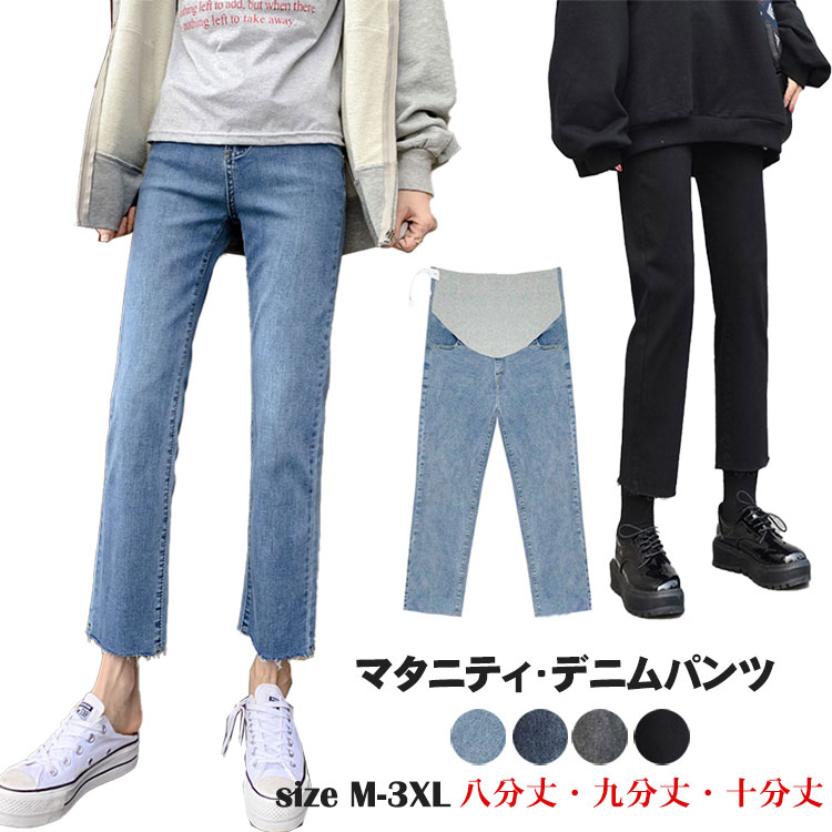 マタニティ デニムパンツ 春秋 3タイプ 八分丈 九分丈 十分丈 カジュアル マタニティウエア 美脚 ウエスト調節可能 産前産後 普段着 ブラック 黒 ブルー グレー M L XL 2XL 3XL
