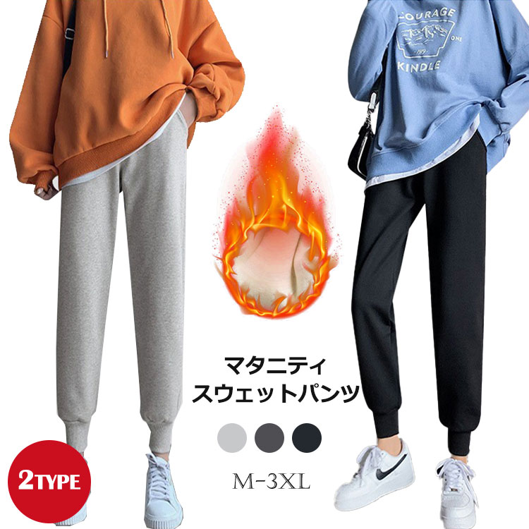 マタニティ パンツ 長ズボン 2タイプ 薄手 裏起毛 スウェットパンツ カジュアル 春秋 冬 あたたかい マタニティ用品 シンプル 美脚 体型カバー ウエスト調節可能 普段着 ブラック 黒 グレー M
