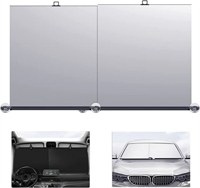 車用 サンシェード 車 フロント日除け 遮阳 車載 遮光シェード ガラスサンシェード ロール式 2点セット 遮光 遮熱 車内温度下げ カット自動伸縮 収納簡単