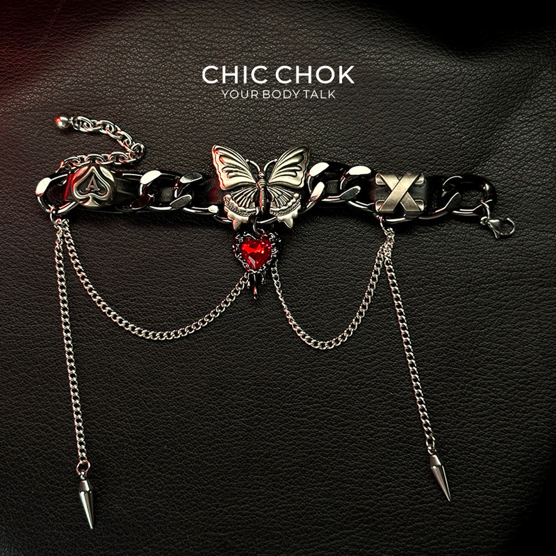 バタフライモチーフブレスレット リベット チェーンデザインブレスレット バングル パンク ボリューム CHIC CHOK [Goth Butterfly] Bracelet, Gothic, Butt