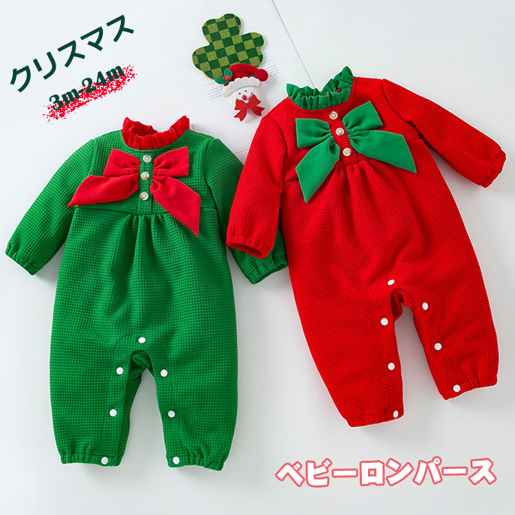 クリスマス ベビーロンパース 長袖 レッド グリーン カバーオール オールインワン かわいい パジャマ ルームウェア スナップボタン付き キッズ服 赤ちゃん 春 秋 冬 記念写真撮影 パーティー 普段